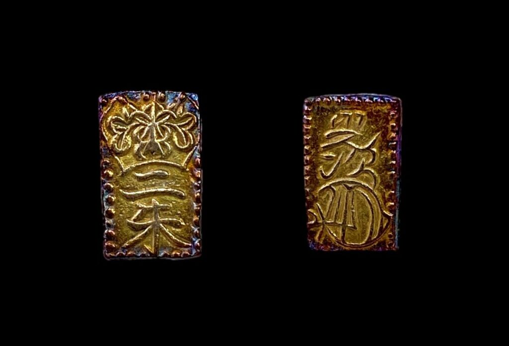 2-Shu (1832-1858) Japanese Samurai gold ingot (standard circulation coin). Emperor Ninkō (1817-1846).