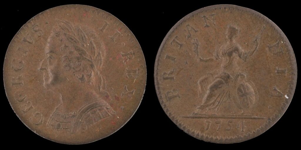 Reverse (right) BRITANNIA (date) – Britannia std.l. on globe, holding sprig and spear, shield rests at her side